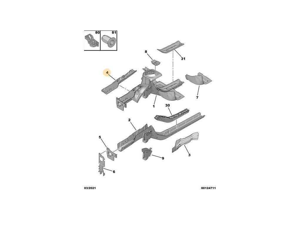 Peugeot 208 P21 Patka podélného nosníku 98 240 094 80