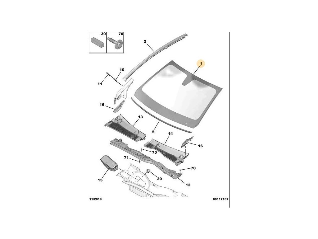 - SKLO ČEL. OKNA VYHŘÍVANÉ A AKUSTICKÉ ČELNÍ SKLO AŽ DO Č.OND 16456