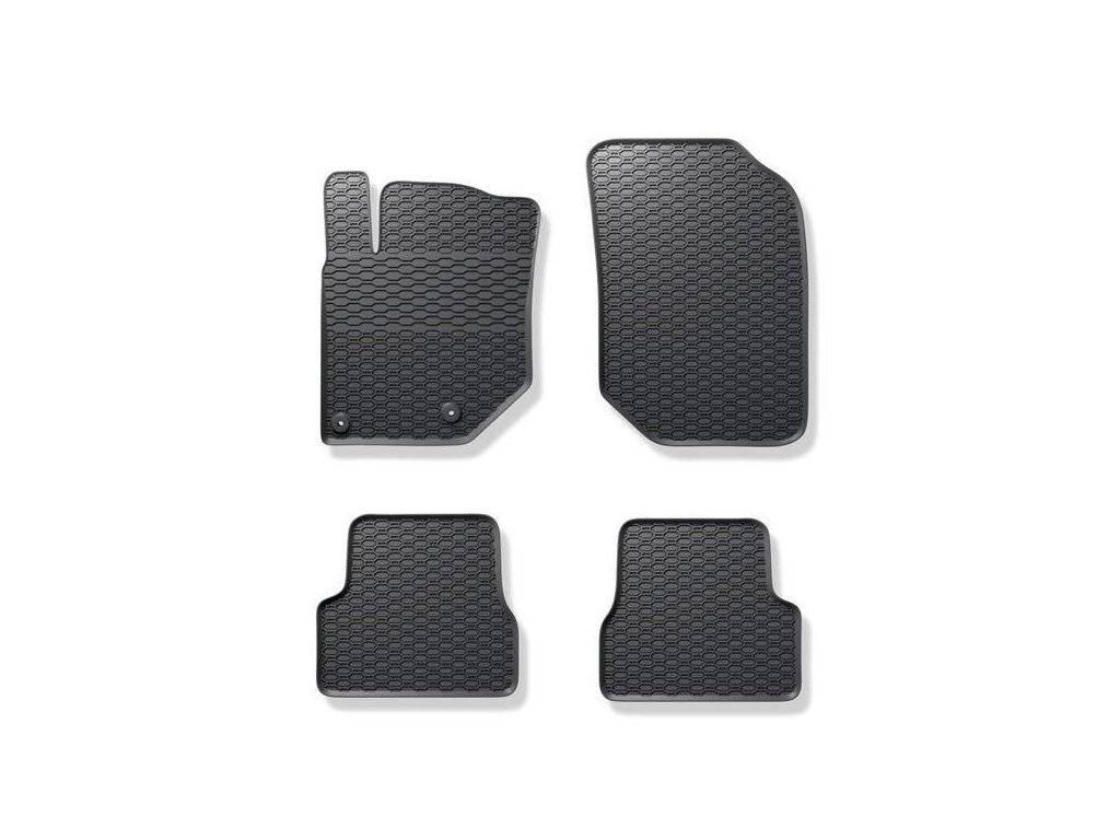 Wytrzymałe gumowe dywaniki samochodowe do Peugeot 2008,208. Posiadają bieżnik o strukturze plastra miodu, który zapobiega rozlewaniu się wody lub topniejącego śniegu na dywan. Krawędź dywanu ma około 1 cm wysokości.